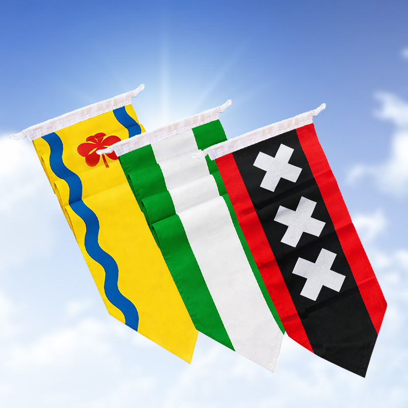 Bent u trots op uw woonplaats? Laat het zien met een gemeentevlag! We hebben vlaggen van Amsterdam tot Zwolle en alles daartussen. Houdt u van de streek waar u vandaan komt? Dan komen onze regiovlaggen van pas. Ziet u de vlag van uw keuze niet terug in ons aanbod? Dan kunt u eenvoudig door ons een vlag laten bedrukken met uw eigen ontwerp! Wist u dat er, naast met de bedrukking en kleuren, op meer manieren met vlaggen kan worden gecommuniceerd? Zo laat u zien dat u ergens rouwig om bent, door de vlag halfstok te hangen. Door de vlag ondersteboven te hangen, laat u zien dat u ergens tegen protesteert. Wij houden vooral van een feestelijke boodschap, namelijk dat u bij Dekker Vlaggen zeker met vlag en wimpel zult slagen!